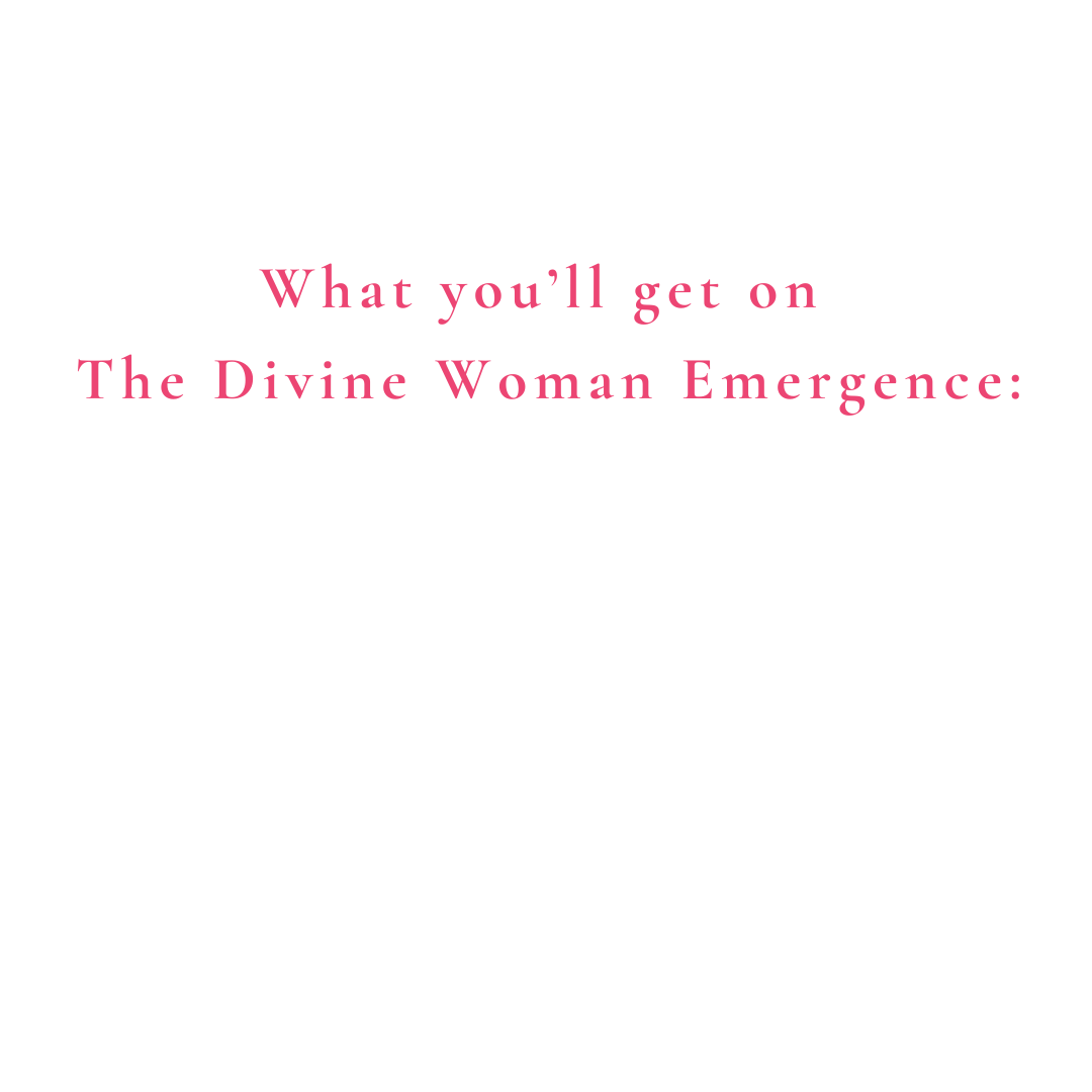 In The Divine Woman Emergence, you will learn the foundational practices to share your medicine with the world in a sustainable way so that you thrive on this path with confidence.