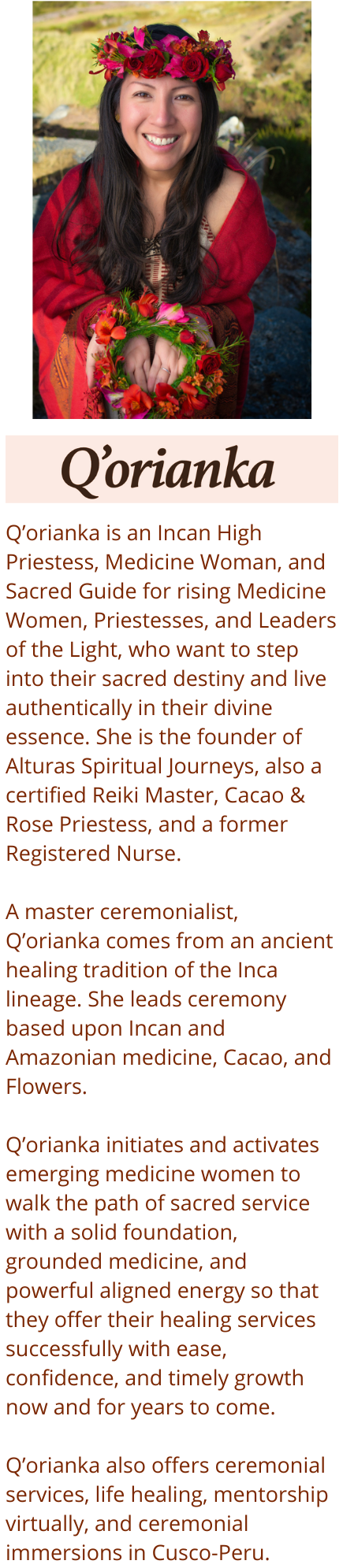 45-Minute private call with your sacred guide, Q’orianka.
